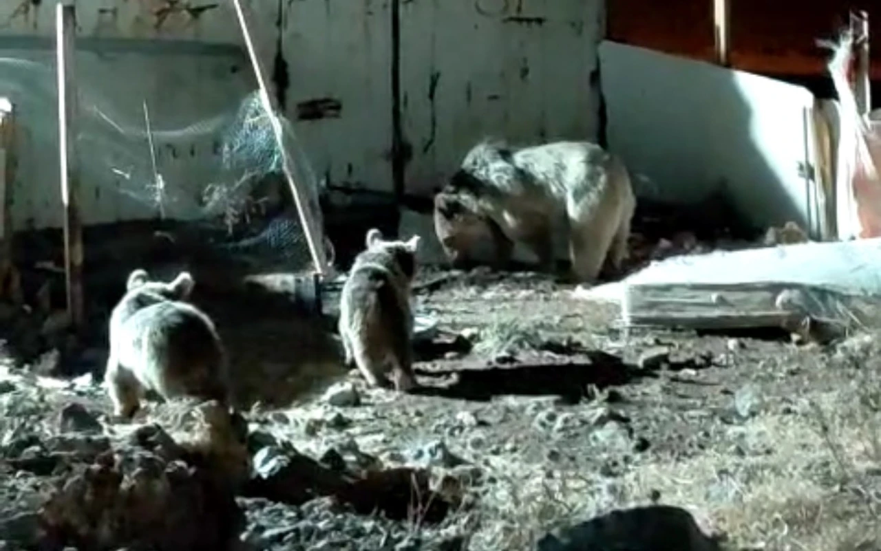 Hakkari’nin Yüksekova ilçesine bağlı Dağlıca köyündeki bir şantiyeye inen ayı ve yavrularının yiyecek aradığı anlar cep telefonu kamerasına yansıdı.