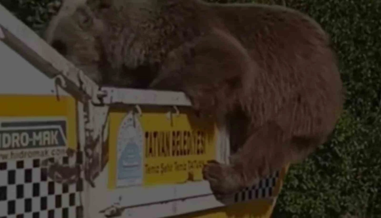 Bitlis’teki Nemrut Krater Gölü civarında aç kalan bir ayı, çöp kamyoneti kasasında yiyecek ararken görüntülendi.