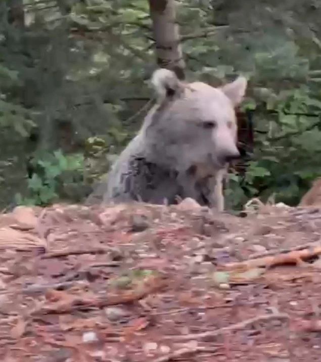 BOLU’DA BİR VATANDAŞ, ORMANLIK ALANDA KARŞILAŞTIĞI AYIYA SESLENDİĞİ ANLARI CEP TELEFONU KAMERASIYLA KAYDETTİ. VATANDAŞIN "SELAMIN ALEYKÜM KANKA, CİPS VEREYİM Mİ?" SÖZLERİ İZLEYENLERİ GÜLÜMSETTİ.