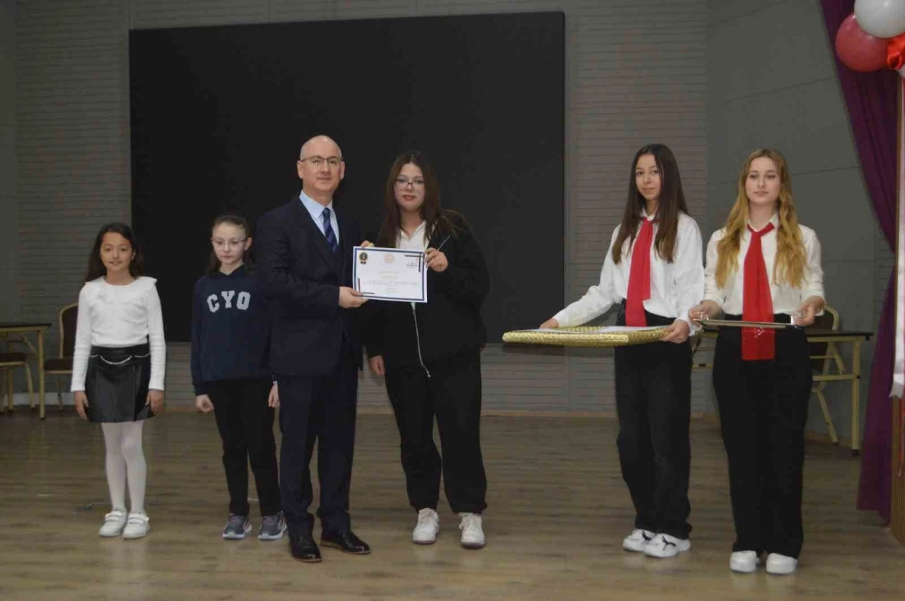 Dereceye giren öğrencilere ödülleri protokol tarafından verildi
