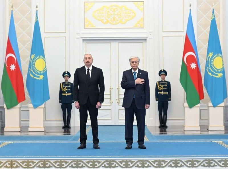 Azerbaycan Cumhurbaşkanı İlham Aliyev, dün akşam resmi ziyaret için geldiği Kazakistan’da temaslarına başladı. Aliyev, başkent Astana’da Kazakistan Cumhurbaşkanı Kasım Cömert Tokayev ile görüştü.