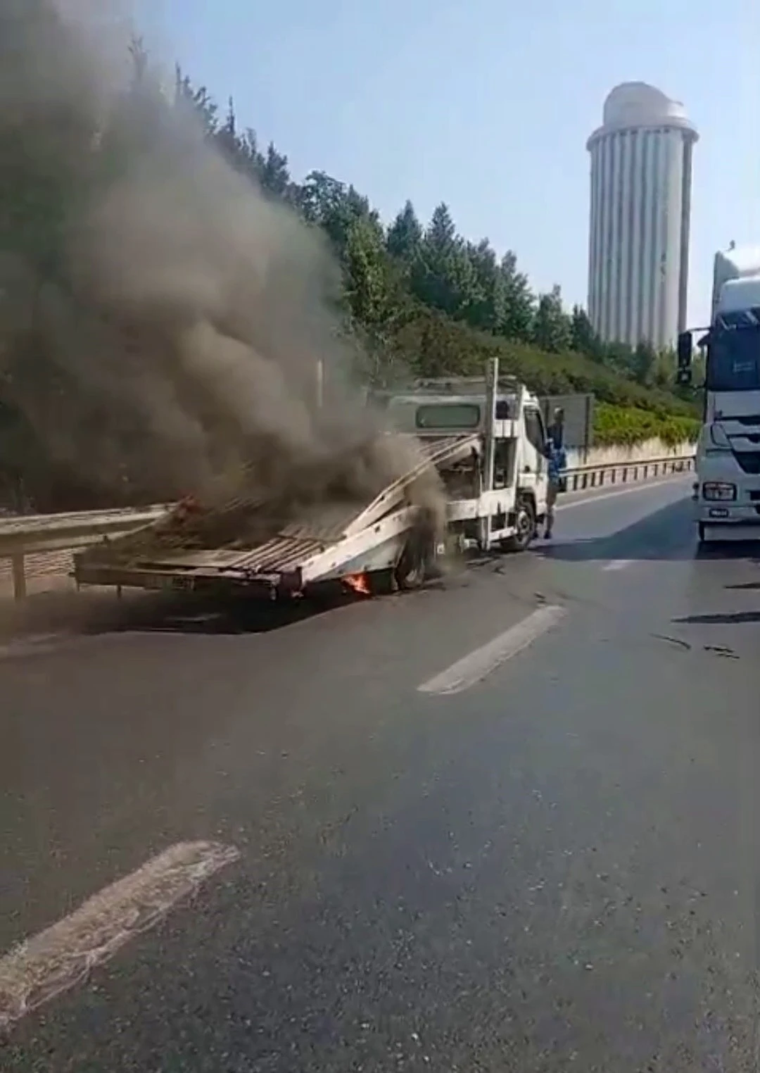 Bağcılar TEM Otoyolu’nda seyir halindeki çekicinin arka kısmında bilinmeyen bir nedenle yangın çıktı. Kısa sürede büyüyen alevler, diğer sürücülerin yangın tüpleriyle müdahalesi sonucunda yan taraftaki ağaçlık alana sıçramadan söndürüldü.