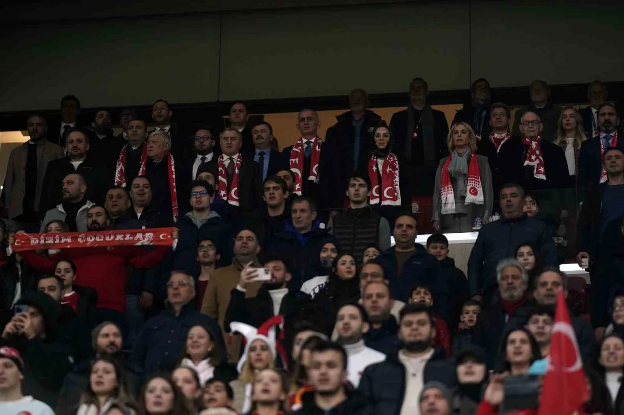 UEFA Uluslar Ligi play-off turu ilk maçında A Milli Futbol Takımı, Ali Sami Yen Spor Kompleksi’nde Macaristan ile karşı karşıya gelirken, Gençlik ve Spor Bakanı Osman Aşkın Bak da millileri bu zorlu müsabakaya yalnız bırakmadı. Bakan, mücadeleyi Türkiye Futbol Federasyonu Başkanı İbrahim Hacıosmanoğlu ile birlikte protokol tribününden izledi.