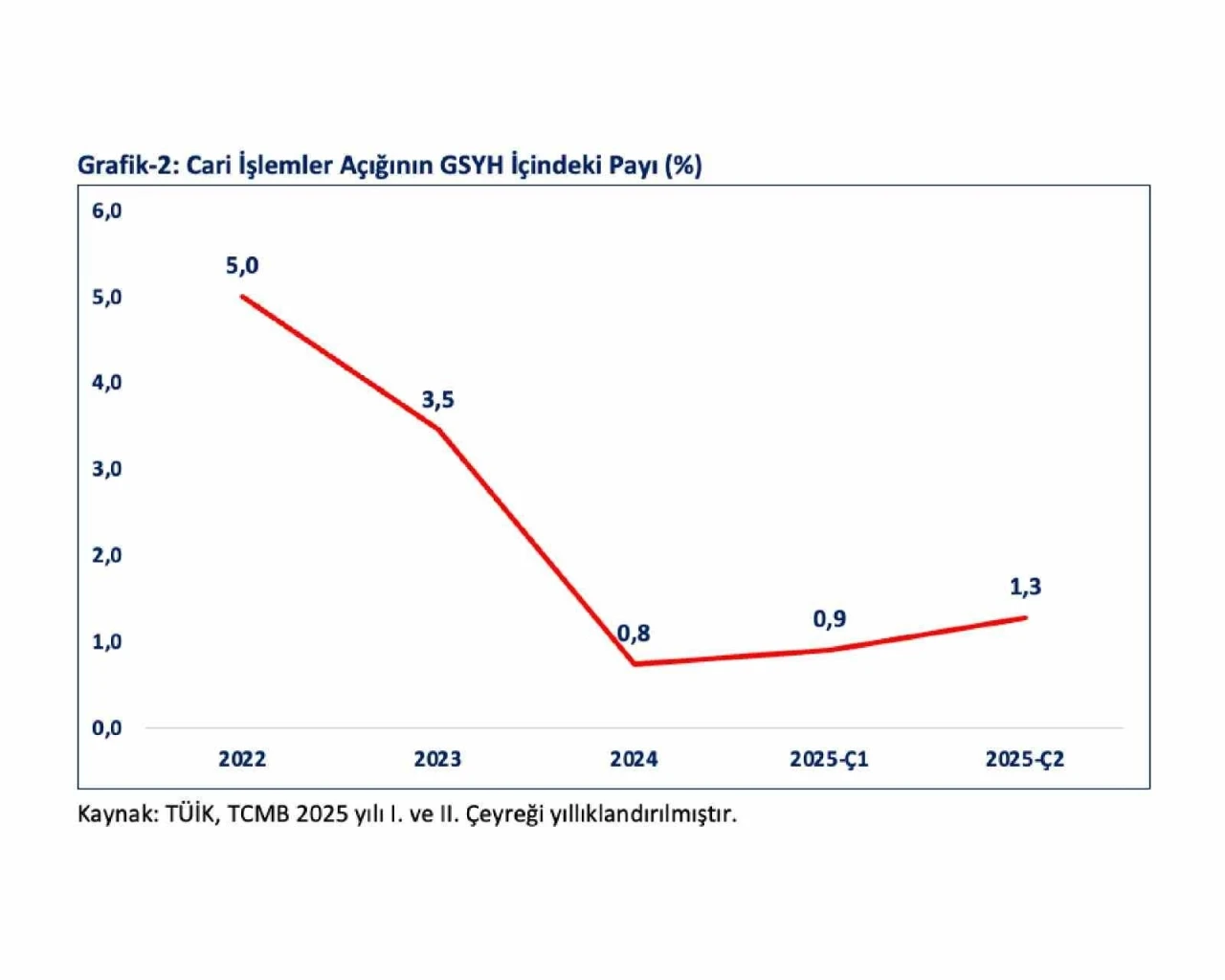 Bolat, 2022’de yüzde 5, 2023’te yüzde 3,5 ve 2024’te yüzde 0,8 olan cari işlemler açığının GSYH içindeki payının, 2025’in ikinci çeyreği itibariyle yıllıklandırılmış olarak yüzde 1,3 ile tarihsel ortalamasının altında seyretmeye devam ettiğine değinerek, "Kararlılıkla sürdürdüğümüz ekonomi programı sayesinde, küresel ve bölgesel belirsizliklere rağmen milli gelirdeki artış, cari işlemler açığındaki iyileşmeler, enflasyondaki düşüş, faiz oranlarındaki gerileme, kredi notlarındaki artışlar, risk primimizdeki gerileme, finansal istikrarı sağlama yönündeki adımlarımız, döviz rezervlerindeki artış ve toplumsal refahın adil dağılımı için sarf ettiğimiz çabalar, ekonomimizdeki dengelenme ve istikrar sürecini güçlendirmektedir" değerlendirmesinde bulundu.