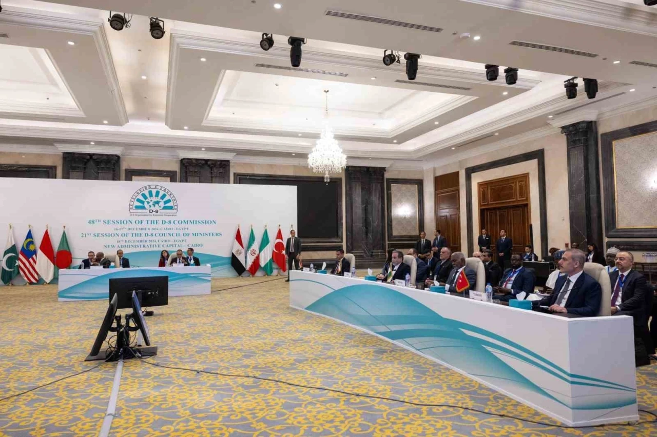 Dışişleri Bakanı Hakan Fidan, Mısır’ın başkenti Kahire’de düzenlenen D-8 Dışişleri Bakanları Konseyi toplantısında, “İsrail, binlerce kardeşimizi vahşice katlederek soykırımını sürdürmektedir” dedi.
