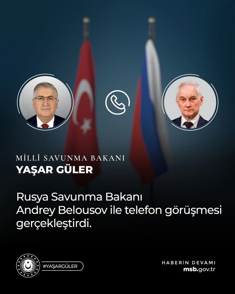 Milli Savunma Bakanı Yaşar Güler ve Rusya Federasyonu Savunma Bakanı Andrey Belousov ile telefon görüşmesi gerçekleştirdi.