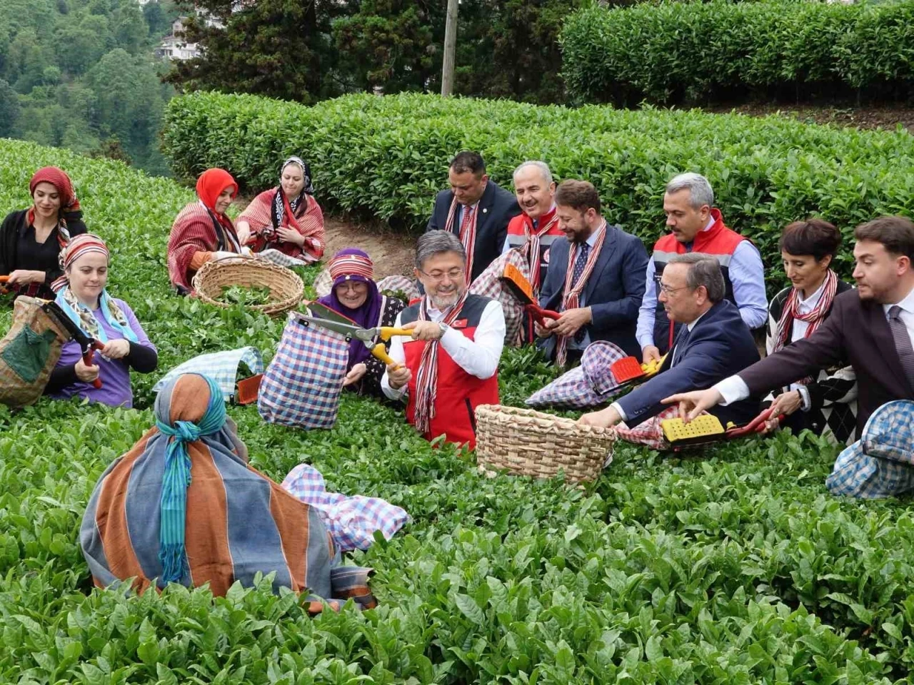 Çay hasadının ardından konuşan Bakan İbrahim Yumaklı, üretimin her aşamasında üreticilerin yanında olduklarına vurgu yaparak "Her bir ürün için tek tek çalışıyoruz. Yine dünyaya açılan kapılarımızdan bir tanesi çay ürünü. Dolayısıyla çay ile ilgili de bütün süreçlerinde hep birlikte, Rize’nin hem sivil toplum kuruluşlarından hem siyasetinden hem diğer unsurlarından bir araya gelerek bir sinerji oluşturarak süreci yönetiyoruz. Kuru çay üretiminde Türkiye olarak dünyada beşinci sıradayız, Avrupa’da birinci sıradayız. Ancak çay tüketiminde dünyada dördüncü sıradayız orada da üst sıraları zorlamaya devam ediyoruz. 2024 yılı itibarıyla çayın Türkiye ekonomisine olan katkısı yaklaşık kırk beş milyar lira, bu çok önemli bir rakam. Özellikle sadece bu yıl için bu ürünün ekonomide ağırlığını da dikkate alırsak hakikaten son derece önemli. 5 ilimiz ağırlıklı olarak üretiyor bunu Rize’de yüzde 64’ü yani 872 bin tonu, Trabzon’da yüzde 23’ü yani 306 bin tonu, Artvin’de yüzde 11’i 147 bin tonu, Giresun’da yüzde 2 yaklaşık 32 bin tonu, çok az da diğer illerimizde var. ÇAYKUR ve özel sektör sezonun açılışı itibariyle artık çay almaya başladı. Bütün hazırlıklarını tamamlamışlardı. Üretilen yaş çayı işleyen ÇAYKUR ve özel fabrikalarla birlikte 195 üretim tesisi var. Bunlardan 49’ u ÇAYKUR’un 2024 yılında ki çay rekoltesi yaklaşık 1 milyon 430 bin ton civarındaydı. Bu yıl bir milyon üç yüz bin ton civarında bir çay rekoltesi bekliyoruz" diye konuştu. Ülke genelinde yaşanan donun çay hasadına etkileri