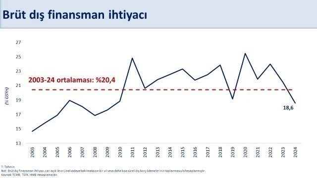 Hazine ve Maliye Bakanı Mehmet Şimşek, sosyal medya hesabından ocak ayı cari açık verilerine ilişkin değerlendirmede bulundu. Cari açığın sürdürülebilir seviyede kalmasını beklediklerini belirten Şimşek, "Yıllık cari açık ocakta 11,5 milyar dolar oldu. Önümüzdeki dönemde artmasını öngördüğümüz cari açığın yıl genelinde OVP tahmini olan 28,6 milyar dolar ve milli gelire oranla yüzde 2’nin altında, sürdürülebilir seviyede kalmasını bekliyoruz. Brüt dış finansman ihtiyacının milli gelire oranı, cari açıktaki düşüşün de katkısıyla son iki yılda 5,4 puan iyileşerek yüzde 18,6 ile uzun dönem ortalamasının altına geriledi. Böylece dış dengeye ilişkin kırılganlıkları önemli ölçüde bertaraf ederek ekonomimizi daha dirençli ve güçlü hale getirdik. Sürdürülebilir cari denge ve uzun vadeli kaynak ile dış finansman ihtiyacını azaltmaya ve finansmanın kalitesini iyileştirmeye devam edeceğiz" dedi.