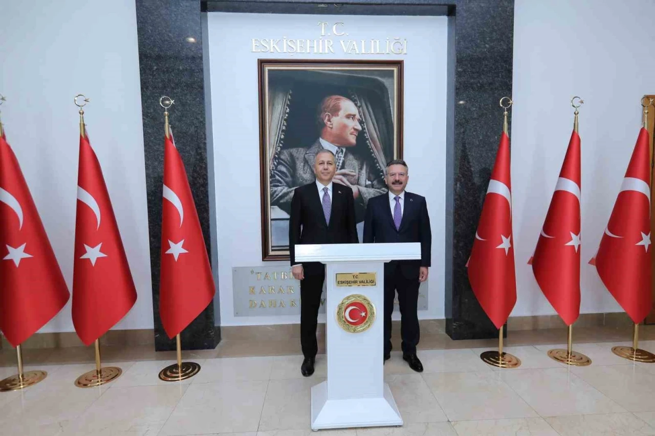 İçişleri Bakanı Ali Yerlikaya, Eskişehir’de katıldığı toplantının ardından Eskişehir Valiliği’ne ziyarette bulundu.