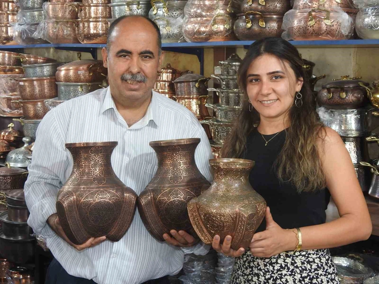 Gaziantep’te otomobil fiyatına satılan, üzerindeki motif ve işlemelerle büyük ilgi gören bakır Hitit vazo takımı fiyatıyla adeta dudak uçuklatıyor.
