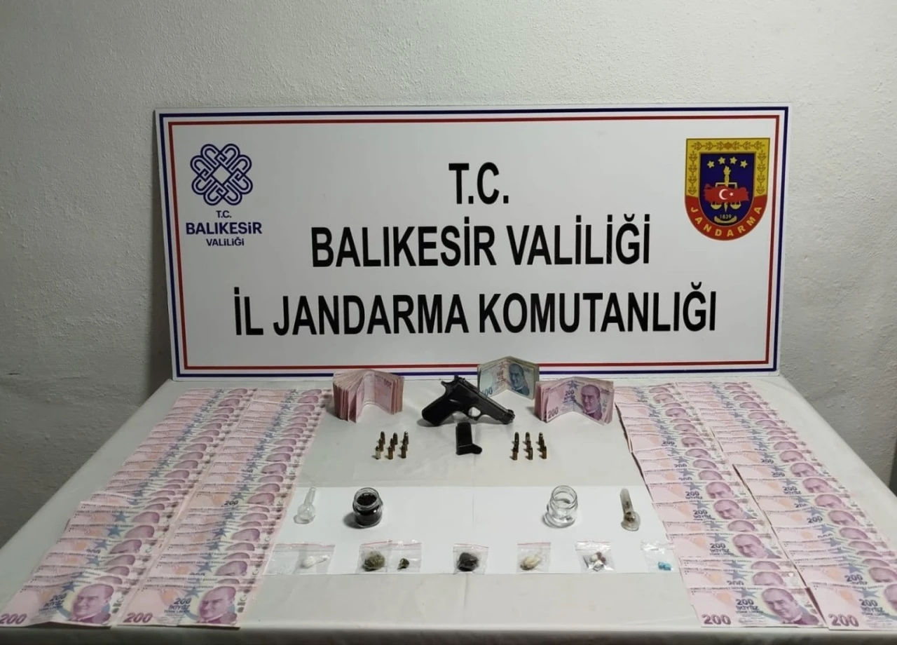 Jandarma ekipleri, şüphelilere ait evler, eklentiler ve araçlarda yaptığı detaylı aramalarda yüklü miktarda uyuşturucu madde, silah ve suçtan elde edildiği değerlendirilen paraya el koydu. Ele geçirilen malzemeler arasında 163 gram metamfetamin, 90 adet sentetik uyuşturucu hap, 60 gram kubar esrar, 32 gram bonzai, 20 gram kenevir tohumu, 5 gram reçina esrar, 3 gram kokain, 2 adet ecstasy hap, 1 esrar öğütme aparatı, 1 hassas terazi ve 8 uyuşturucu kullanma aparatı (payp) bulundu.