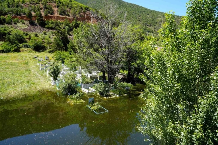 Gümüşhane’nin Torul ilçesine bağlı Çamlıca Mahallesi’nin mezarlığı 8 yıldır Torul Barajı’nın su seviyesinin artmasıyla yaz aylarında sular altında kalıyor. Yakınlarının mezarlarının sular altında kaldığını gören mahalle sakinleri ise büyük üzüntü yaşıyor. Sorunun yıllardır sürdüğünü ve herhangi bir çözüm bulunamadığını dile getiren mahalle sakinleri, tek çözümün mezarların taşınması olduğunu ifade etti.