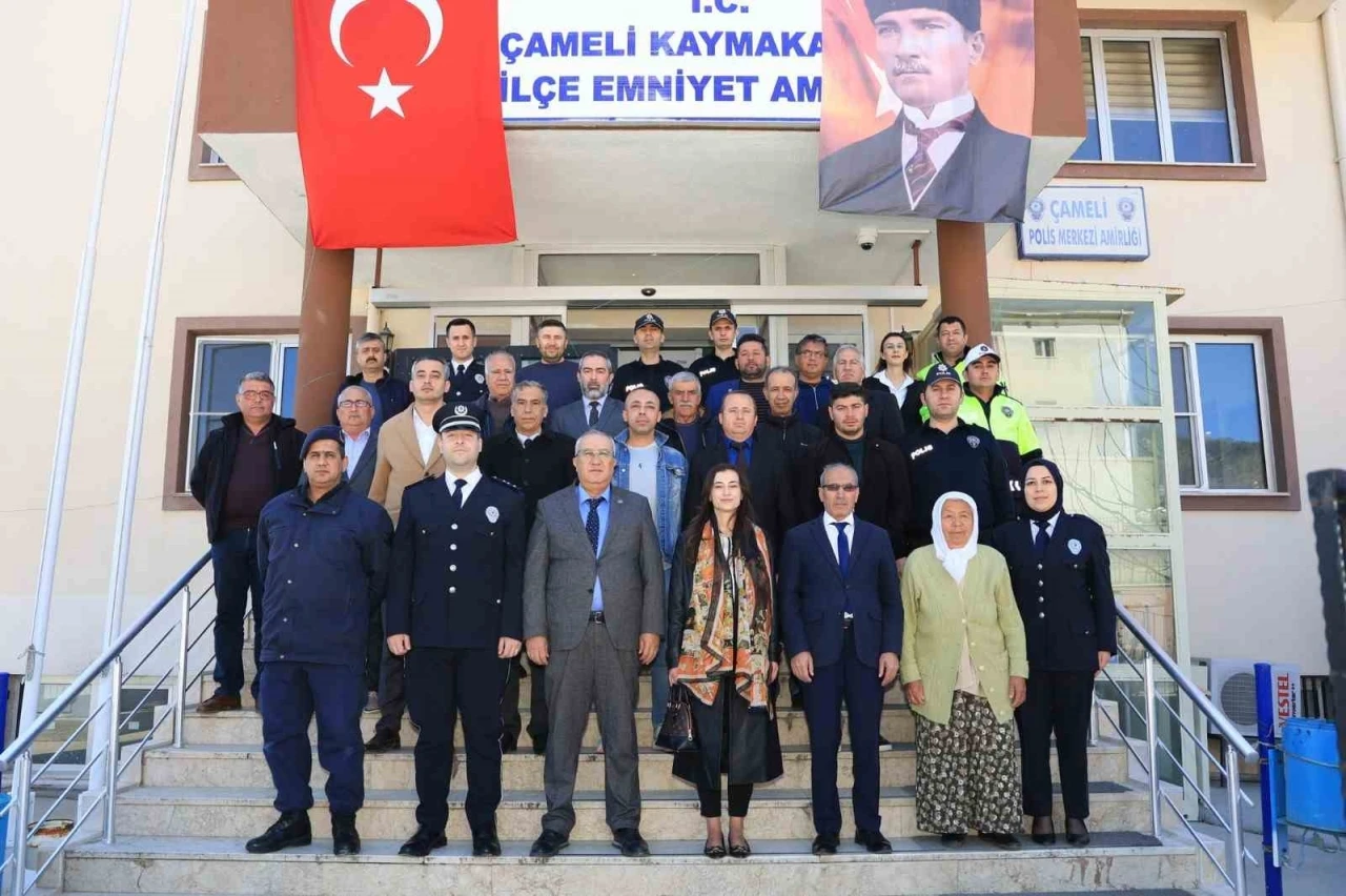 DENİZLİ (İHA) – Denizli’nin Çameli Belediye Başkanı Cengiz Arslan, Türk Polis Teşkilatının 180. kuruluş yıldönümü dolayısıyla Çameli İlçe Emniyet Müdürlüğü’nü ziyaret etti. Ziyaret kapsamında İlçe Emniyet Amiri Bilal Cingör, ilçede yürütülen emniyet hizmetleri hakkında Başkan Arslan’a bilgi verdi. Programda, İlçe Müftüsü İsmail Yılmaz tarafından aziz şehitler anısına Kur’an-ı Kerim’den ayetler okunarak dua edildi. Belediye Başkanı Cengiz Arslan, Türk Polis Teşkilatı’nın 10 Nisan Polis Günü ve Polis Haftası’nı kutlayarak, emniyet mensuplarına görevlerinde başarılar diledi. Ziyaret, hatıra fotoğrafı çekimiyle sona erdi. Gerçekleştirilen programa, Cumhuriyet Savcısı Sefaye Merve Orhan, İlçe Jandarma Komutanı Suat İşcen, İlçe Müftüsü İsmail Yılmaz ve protokol üyeleri de katıldı. Başkan Arslan, ziyaret sonrasında yaptığı açıklamada, "Milletimizin huzur ve güvenliği için fedakarca görev yapan tüm emniyet teşkilatımızın Polis Günü ve Polis Haftası’nı kutluyor; görevi başında şehit düşen kahraman polislerimize Allah’tan rahmet, gazilerimize ise sağlıklı ve uzun ömürler diliyorum," ifadelerini kullandı.