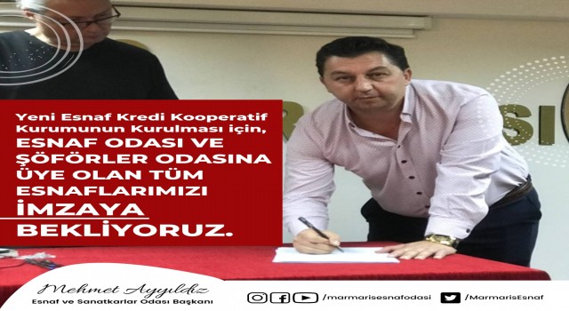 Esnaflara katma değer sağlayabilmek için esnaf ve sanatkarları imzaya davet eden Ayyıldız, “Hayırlı uğurlu olsun. Esnaf ve sanatkarlarımız için yeni bir hizmet daha gerçekleştiriyoruz. Esnafımızın en büyük sıkıntısı, kredi sıkıntısı, finansal sıkıntı. Bu konuda adım atabilmek, onlara yardımcı olabilmek adına hayırlısıyla yeni bir Esnaf Kredi Kooperatifi Kurmaya başlıyoruz. Tüm esnaf ve sanatkarlarımı imzaya davet ediyorum. Kredi kooperatifi kurabilmemiz için imzaya ihtiyacımız var. Lütfen her hafta içi saat 10 ile 16 arasında esnaf odamıza buyursunlar gelsinler. Noter huzurunda imzalarını atsınlar ve yeni esnaf kredi kooperatifimizi inşallah hayırlısıyla kurarız. Marmaris esnafına inşallah faydamız olur” dedi.