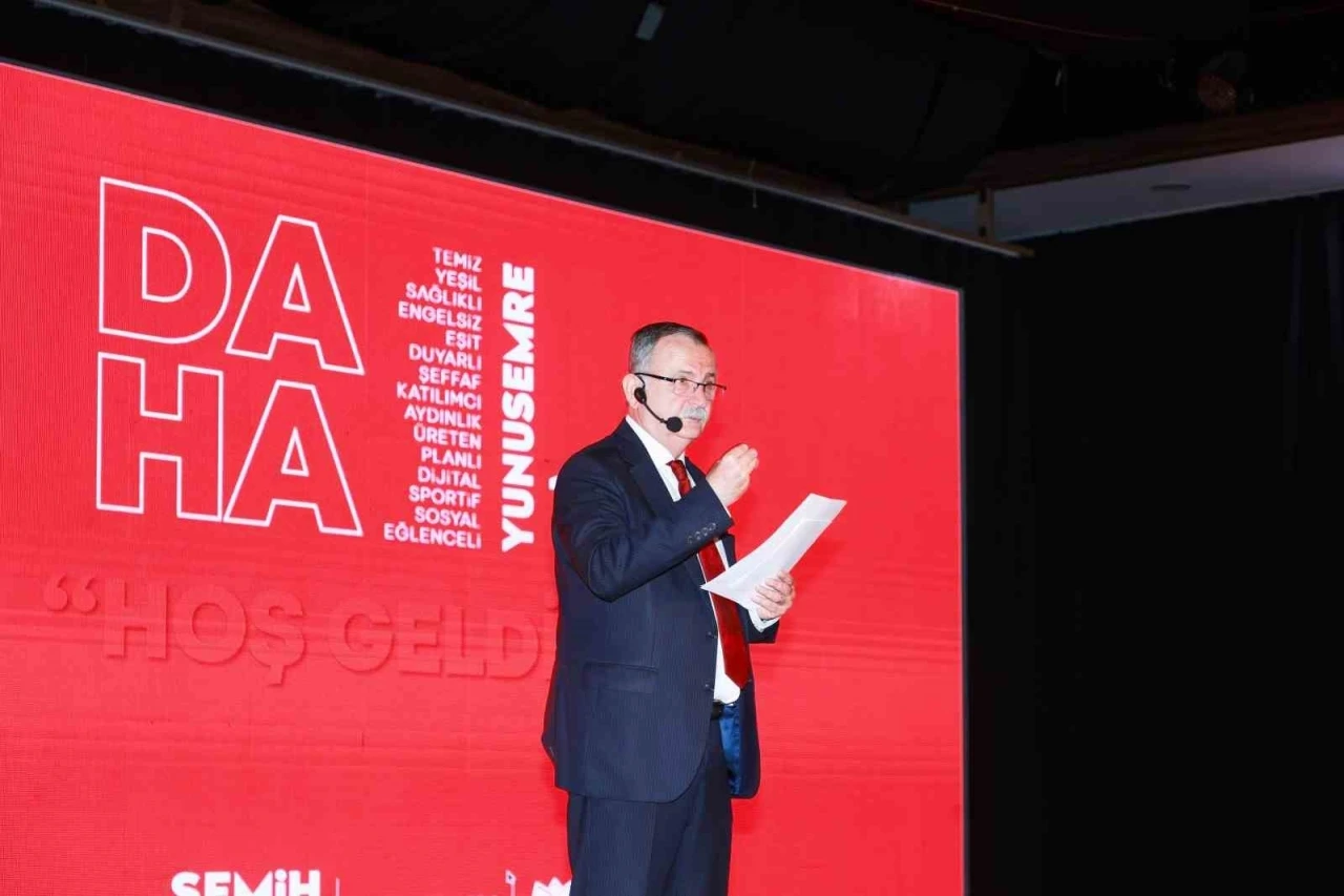 Yunusemre Belediye Başkanı Semih Balaban, görevdeki 14 ayda yaptığı çalışmaları 1. Yıl Buluşması’nda anlattı. Halkçı, katılımcı ve tasarruf odaklı belediyecilik anlayışıyla çalıştıklarına dikkat çeken Başkan Balaban, yeni vizyonları "DAHA" ile ilçeyi ileriye taşıyacaklarını vurgululadı.