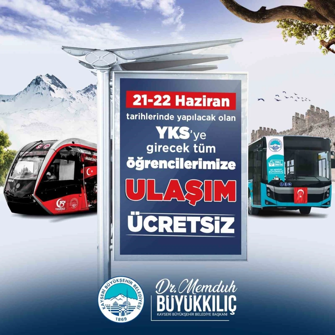 Kayseri Büyükşehir Belediye Başkanı Dr. Memduh Büyükkılıç; hafta sonu Yükseköğretim Kurumları Sınavı’na (YKS) girecek adaylara başarılar diledi. KAYMEK’in 21-22 Haziran’da yapılacak YKS öncesi 524 öğrenciye ücretsiz kurs desteği sunduğunu hatırlatan Başkan Büyükkılıç, sınava girecek gençlere ücretsiz toplu ulaşım müjdesi verirken, sınav süresince sessiz ortam çağrısı ile tam destek verdi.