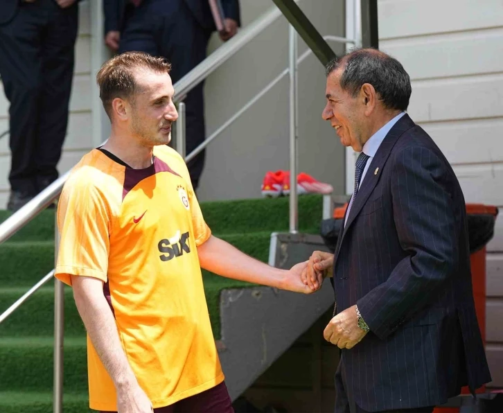 Galatasaray Başkanı Dursun Özbek ve yönetim kurulu üyeleri, futbol takımının bugünkü antrenmanını ziyaret etti.