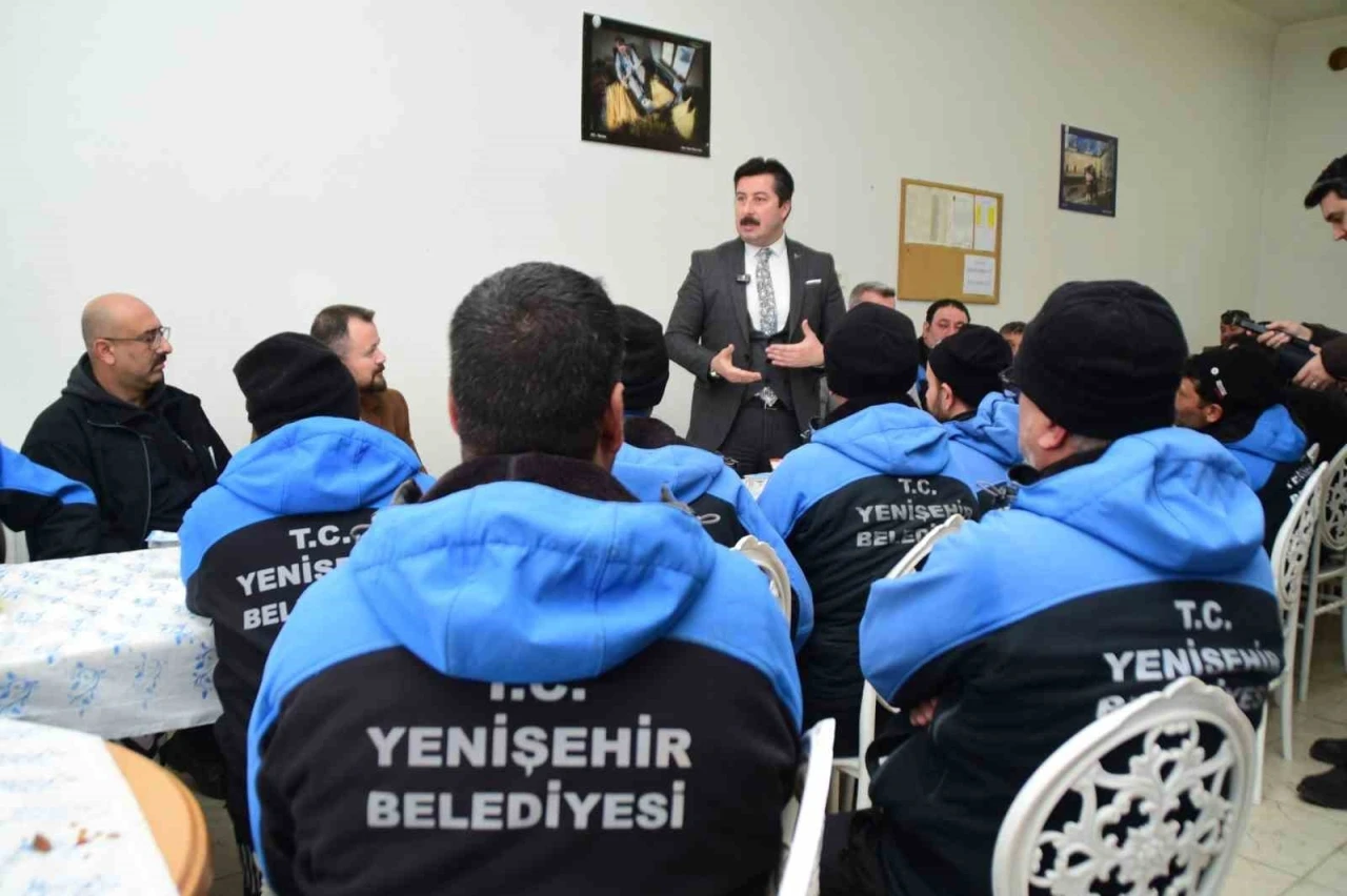 Yenişehir Belediye Başkanı Ercan Özel, Temizlik İşleri Müdürlüğü Ekiplerinin davetini kırmayarak sofralarına misafir oldu.