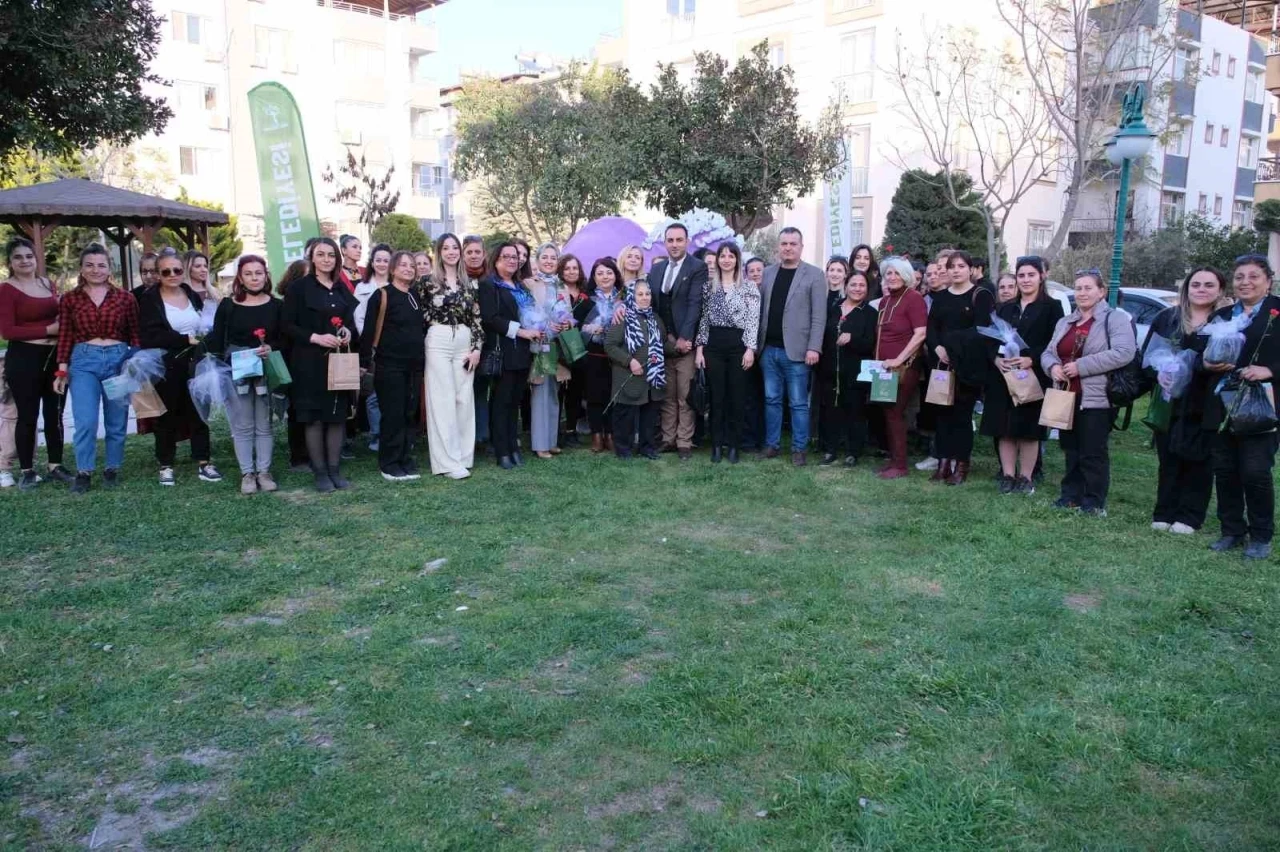 Defne Belediye Başkanı Halil İbrahim Özgün, belediyede görevli kadınlarla bir araya gelerek çiçek takdim etti.