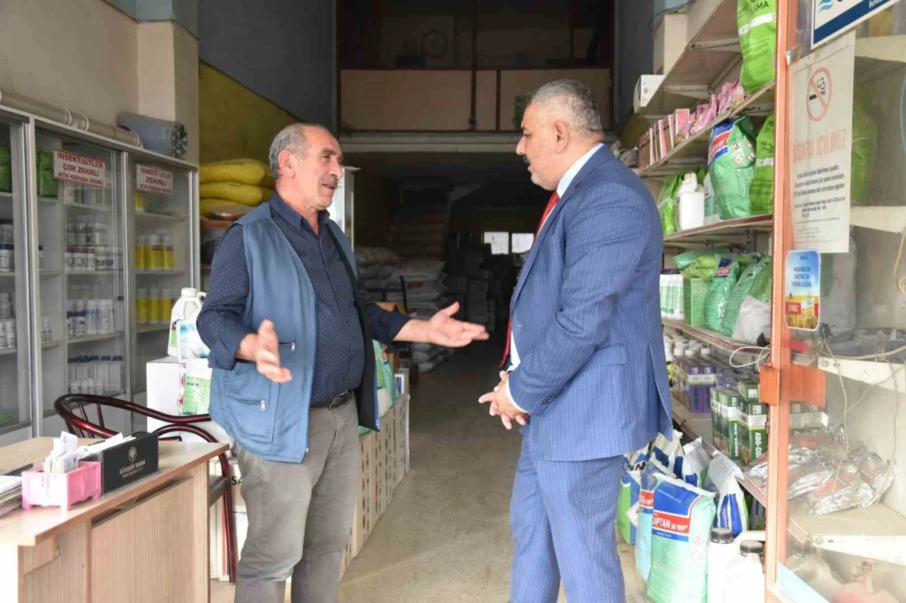Niyazi Mısri Mahallesi’ndeki, zirai ilaç, tarım makinesi, ekipman satışı yapan firmaları ziyaret eden MTSO Yönetim Kurulu Başkan Sadıkoğlu, zirai don afeti sonrası yaşanan iş kayıpları nedeniyle ekonomik dar boğaza giren esnafla bir araya geldi.