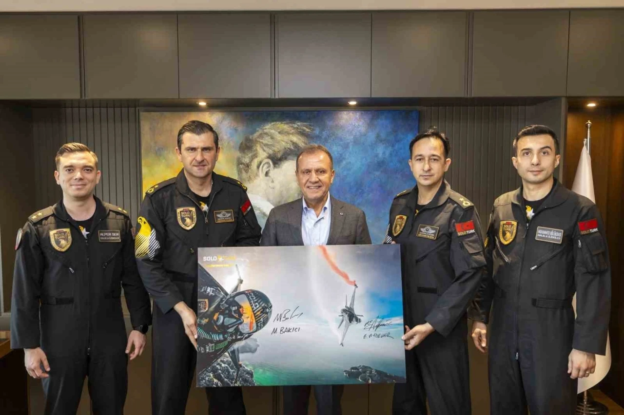Türk Hava Kuvvetleri’nin akrobasi timi SOLOTÜRK ekibini ağırlayan Büyükşehir Belediye Başkanı Vahap Seçer, "5 yıl sonra tekrar SOLOTÜRK ekibini ağırlamaktan büyük mutluluk ve gurur duyuyoruz" dedi.