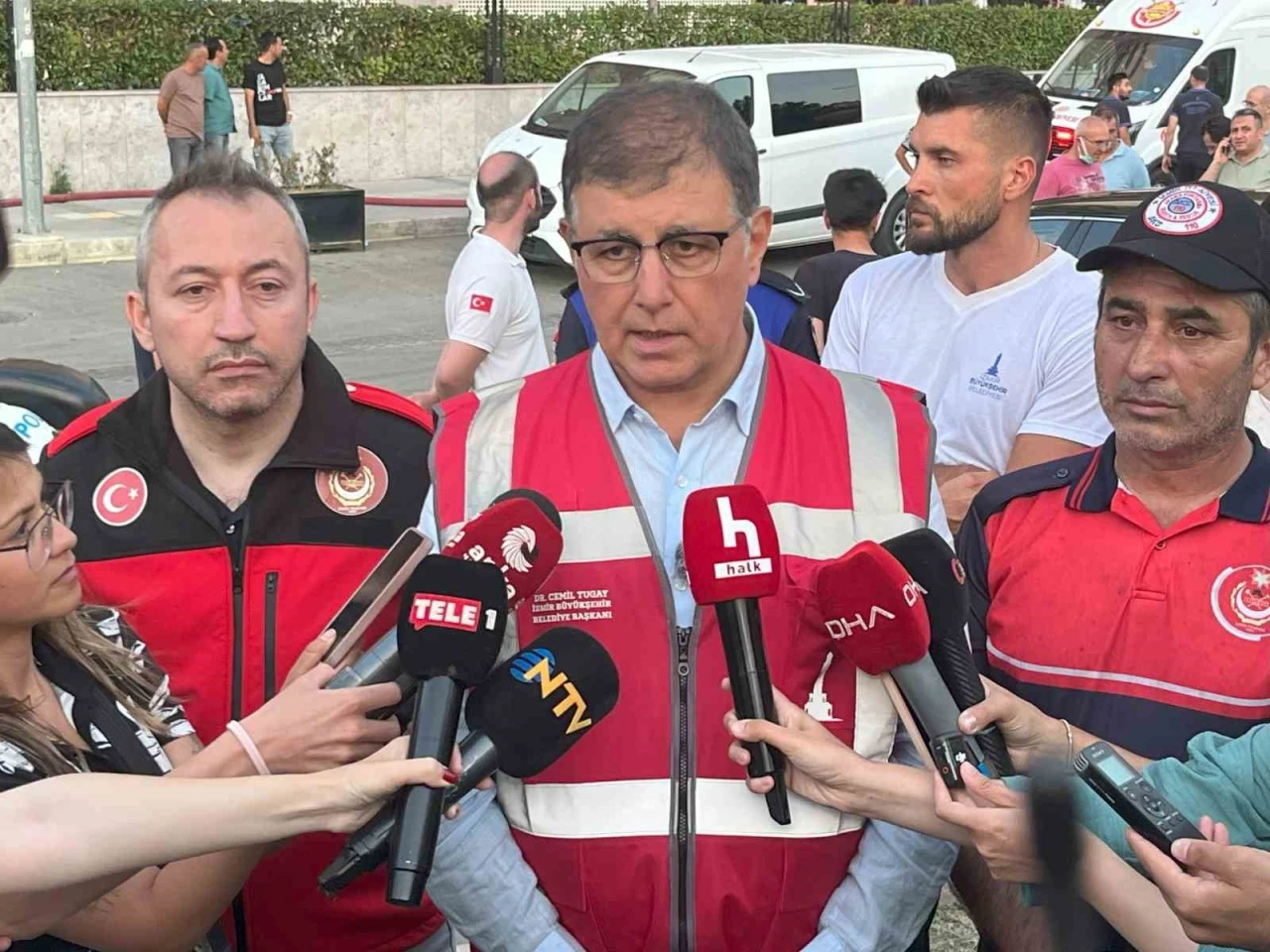 İzmir’in Konak ilçesinde bir inşaat deposunda çıkan yangının ardından bölgede incelemelerde bulunan İzmir Büyükşehir Belediye Başkanı Cemil Tugay, "Yangın, hastanenin arka tarafında, ancak hastane ile doğrudan ilgisi olmayan bir alanda başlamış gibi görünüyor. Yangında herhangi bir yaralanma yok" dedi.