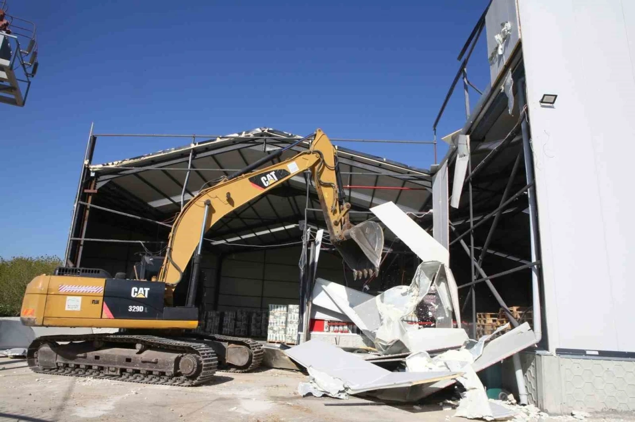 Nilüfer Belediyesi yıkım ekipleri, Başköy Mahallesi’nde 2 bin 400 metrekare alanda faaliyet gösteren ruhsatsız depoyu yıkarak, kullanılamaz hale getirdi.