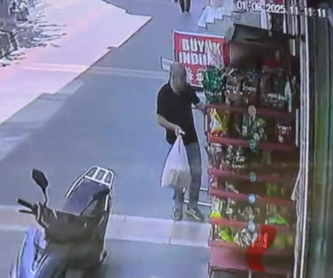 Batman’da caddede yürüyen bir kişi, büfenin önünde bulunan dolaptan meyve suyu alarak arka cebine koydu. Daha sonra dükkana giren şahıs, parasını ödeyerek sadece bisküvi satın aldı. Meyve suyunun parasını ödemeyen şahsın bu anları, güvenlik kamerasına saniye saniye yansıdı.