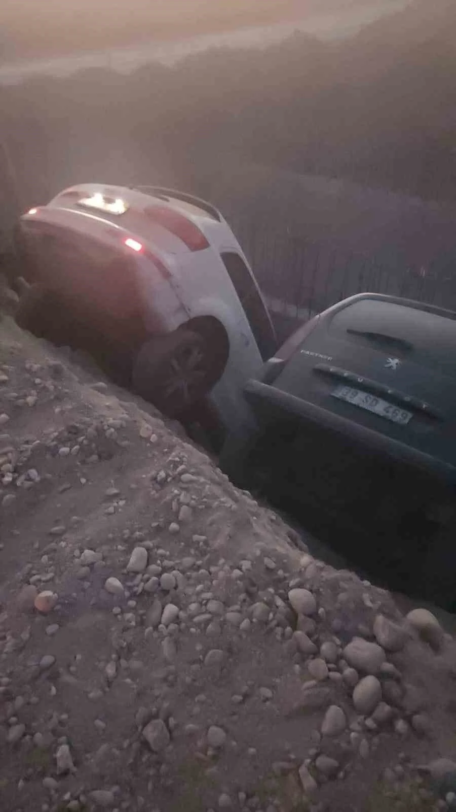 Batman’da iki otomobil, yol genişletme çalışmaları sırasında açılan çukura düştü.