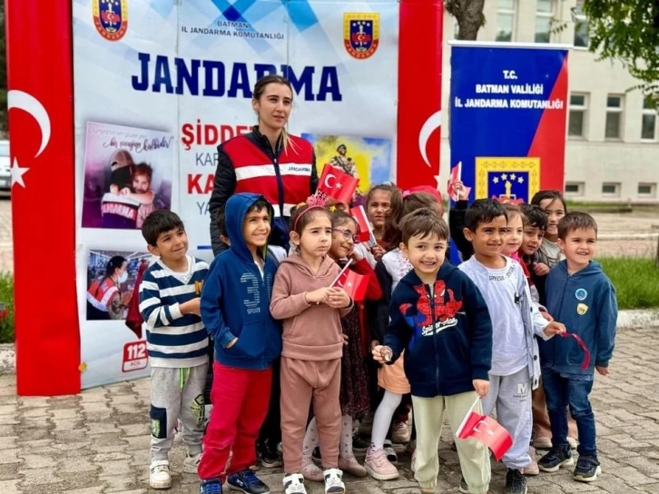 Çok sıcak ve samimi bir ortamda hoş vakit geçiren minik öğrencilere, İlçe Jandarma Komutanı Jandarma Yüzbaşı Aytaç Karaoğlu, ilçe milli eğitim müdürü Mehmet Nezir Sevim ve öğretmenler eşlik etti.