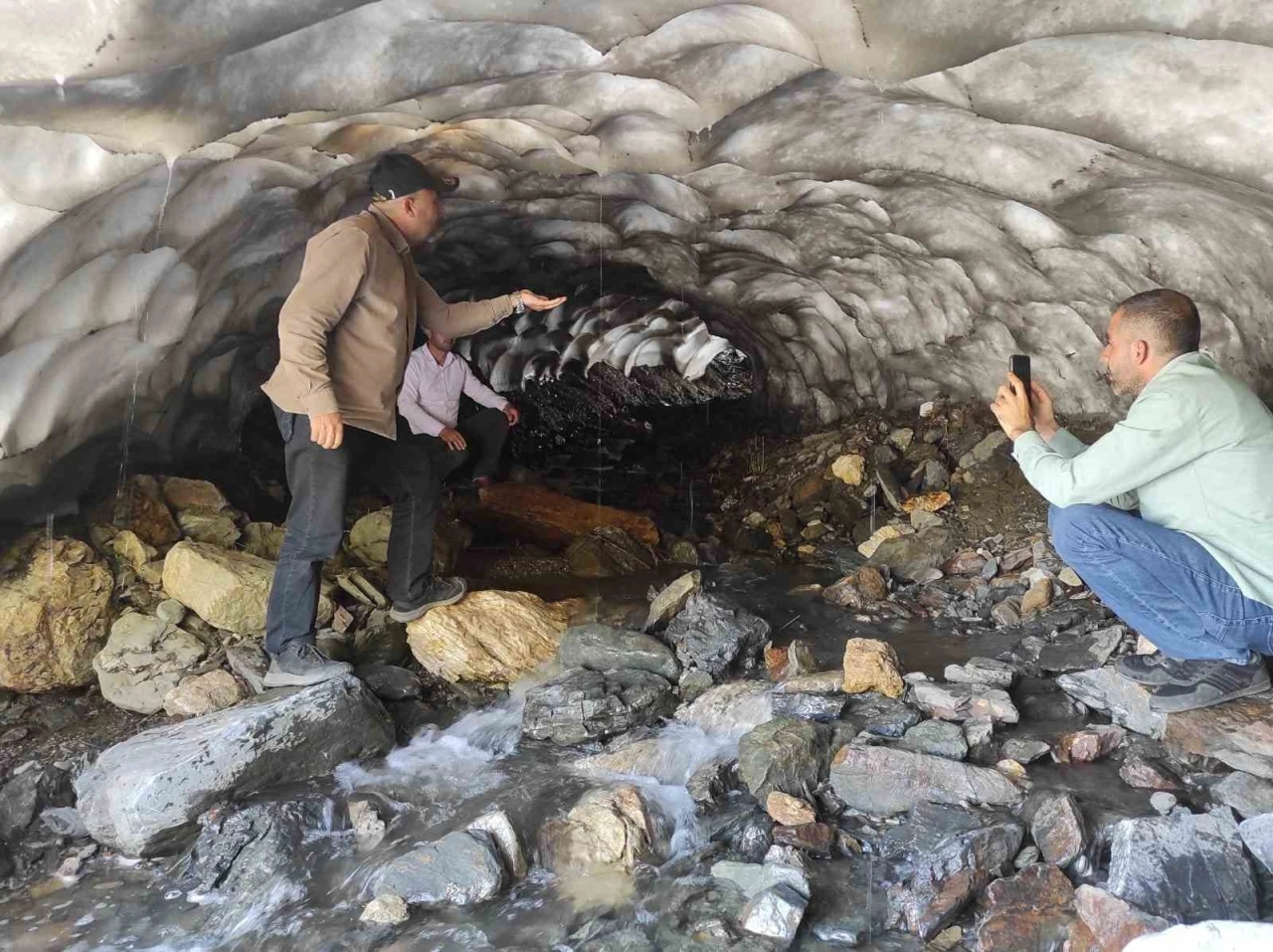Batman’ın Sason ilçesinde 2 bin 900 rakımlı Mereto Dağı eteklerindeki kar tünelleri sıcaktan bunalan vatandaşların uğrak noktası oluyor.