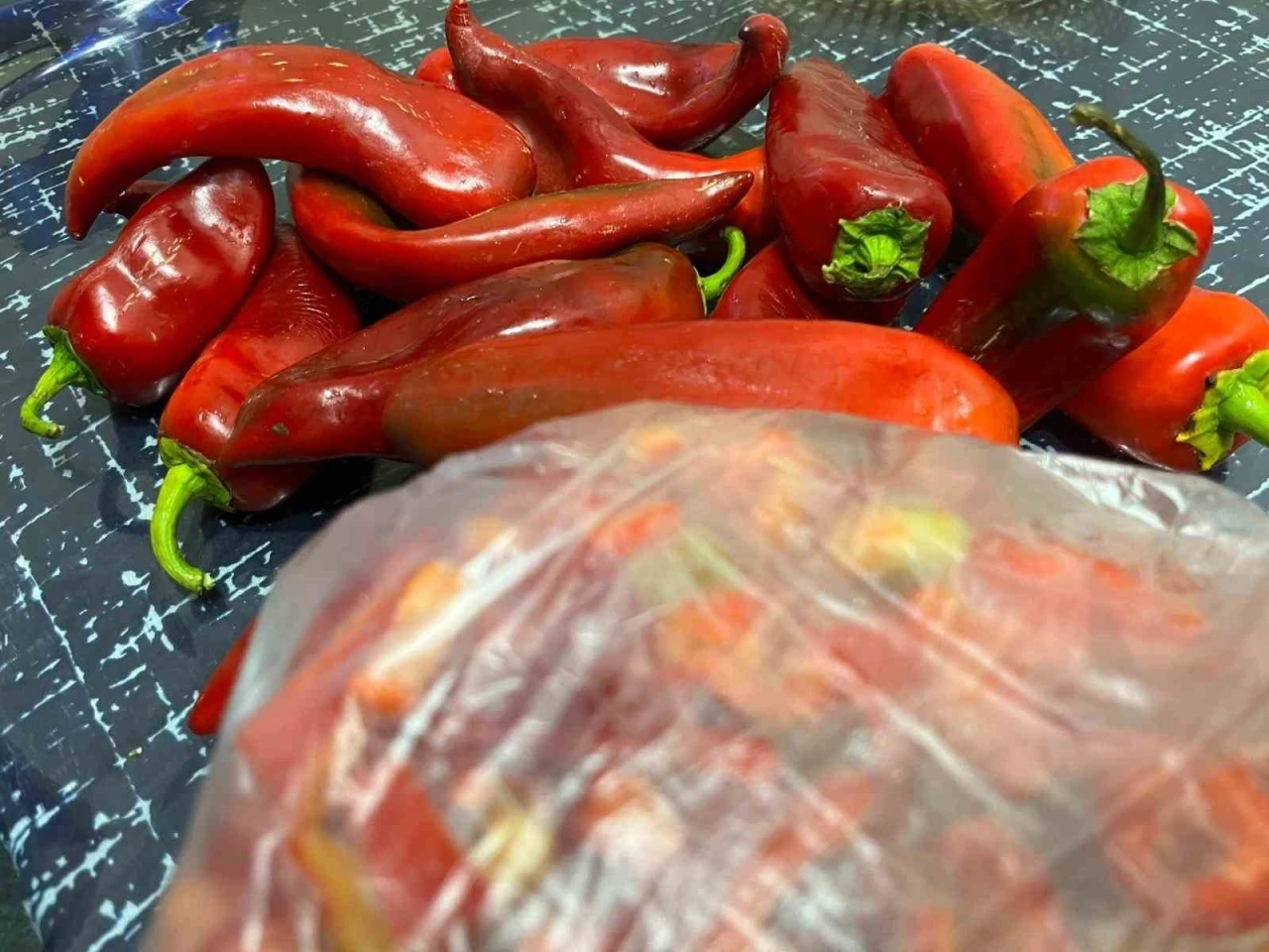 Pazardan özenle seçilen biberler, evlerde titizlikle yıkanıp temizlendikten sonra küp küp veya jülyen olarak farklı şekillerde doğranıyor. Daha sonra tek kullanımlık porsiyonlar halinde buzdolabı poşetlerine doldurulan biberler, dondurucuda muhafaza edilmek üzere buzluğa yerleştiriliyor.