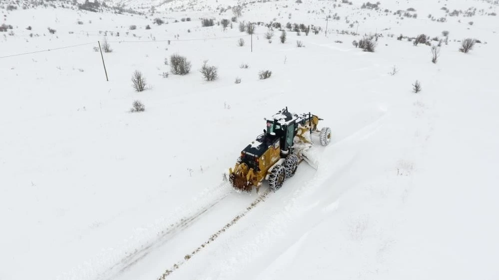 Kapanan yolların açılması için İl Özel İdaresi ekipleri 35 iş makinesi ve 50 personelle sahada çalışma yürüttü.