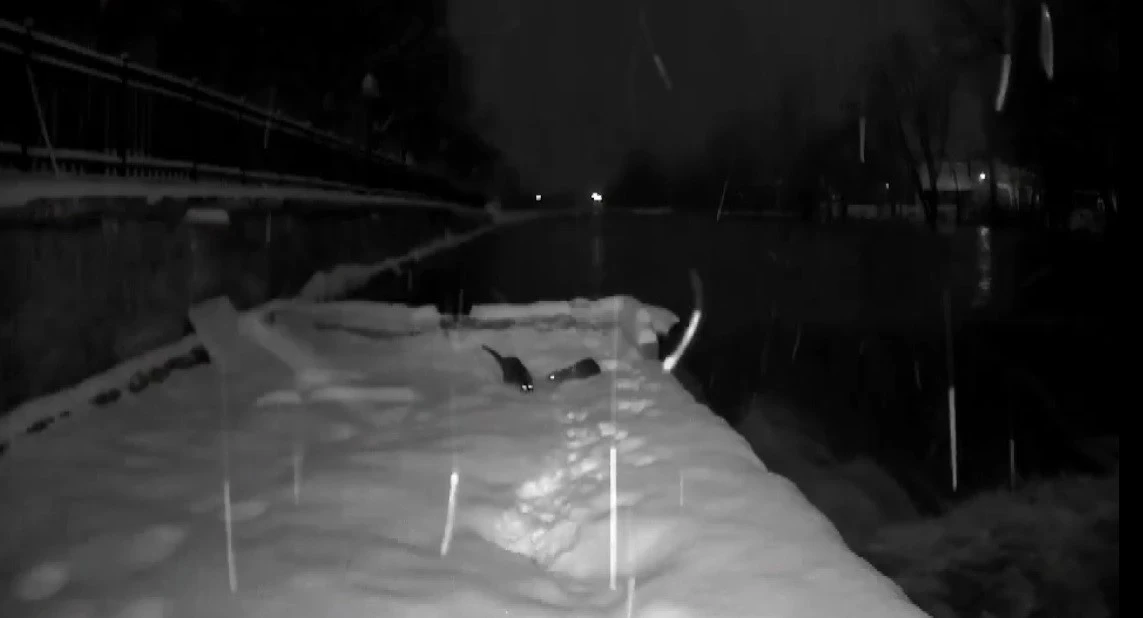 Bayburt’ta nesli tükenme tehlikesi altında olan su samurları Çoruh Nehri’nin karla kaplı kıyısında görüntülendi.