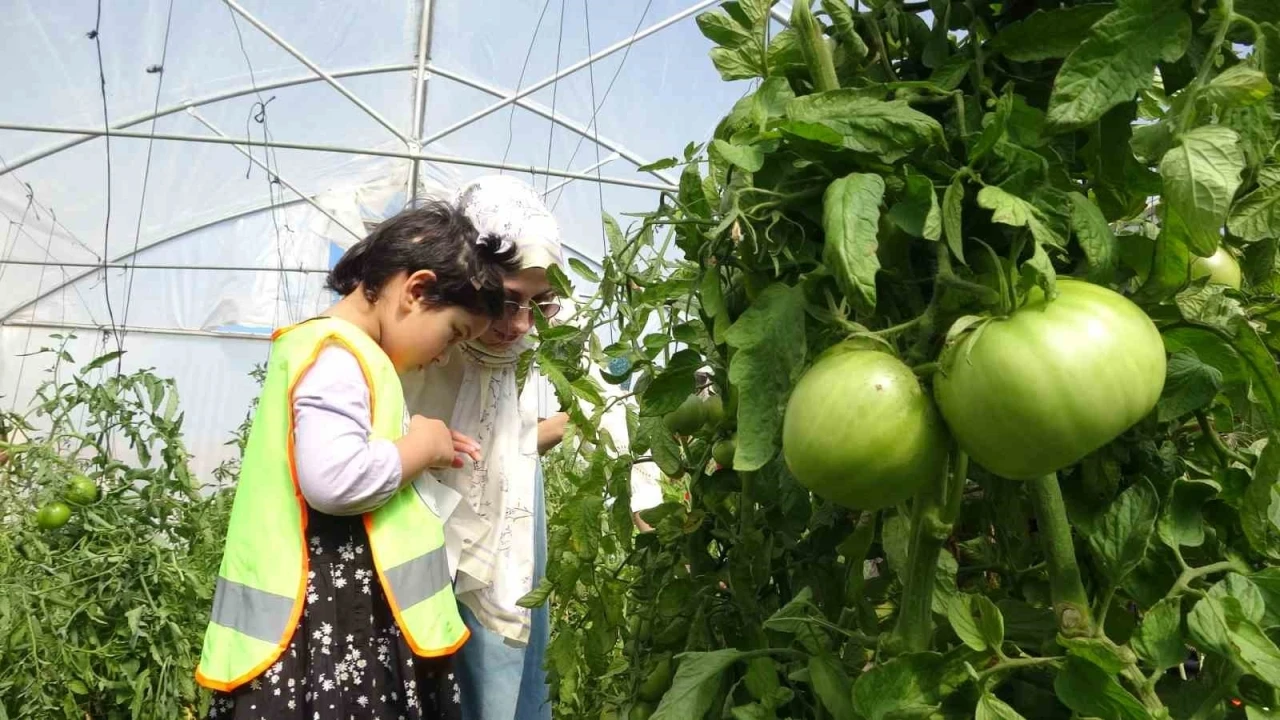Bayburt’ta lise öğrencilerinin oluşturduğu serada özel eğitim öğrencileri sebze hasadı yaptı. Öğretmenleri gözetiminde organik domates, biber ve fasulye toplayan öğrenciler, keyifli bir gün geçirdi.