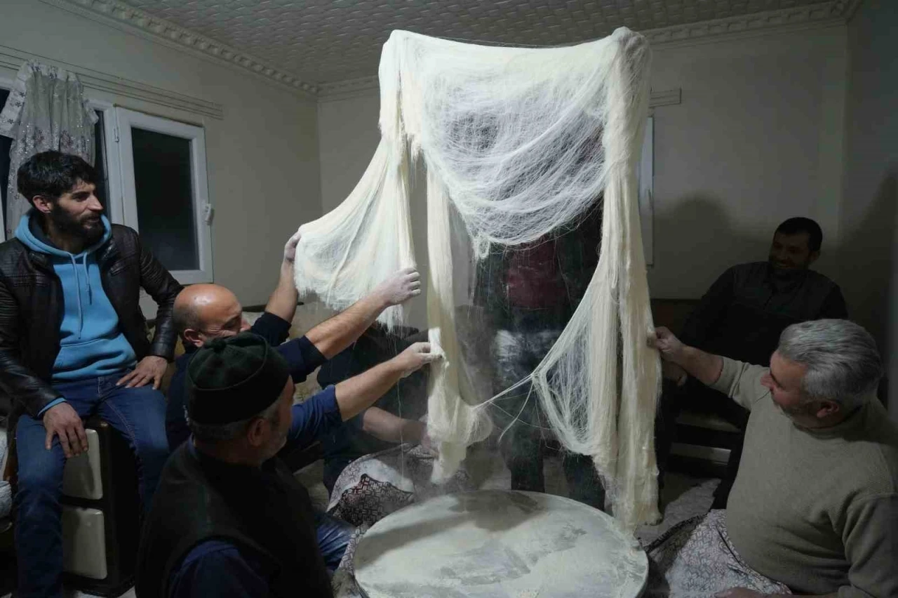 Yöresel lezzet için bir araya gelen köy sakinleri; türküler ve maniler eşliğinde asırlık gelenek olan tel helvası çekimini yapıyor. Eksi 20 dereceyi bulan havada, bin bir zahmetle saatlerce yapılan tel helvası dakikalar içinde tüketiliyor.