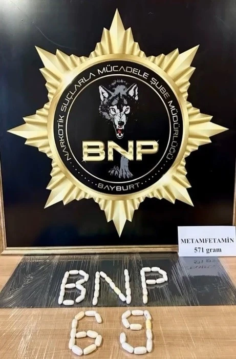 Bayburt Cumhuriyet Başsavcılığı koordinesinde İl Emniyet Müdürlüğü Narkotik Suçlarla Mücadele Şube Müdürlüğü ekiplerince, uyuşturucu madde kullanımı, imalatı ve ticaretinin önlenmesine yönelik yürütülen saha ve analiz çalışmaları kapsamında durumundan şüphelenilen M.M. isimli İran uyruklu şahıs durduruldu. Gözaltına alınan şüpheli, iç beden muayenesi yapılmak üzere Bayburt Devlet Hastanesine sevk götürüldü. Burada yapılan tetkikler ve çekilen röntgen sonucunda, şahsın mide ve bağırsaklarında çok sayıda yabancı madde olduğu tespit edildi. Tıbbi müdahale ile şahsın vücudundan 62 parça halinde toplam ağırlığı 571 gram olan metamfetamin maddesi çıkarıldı.