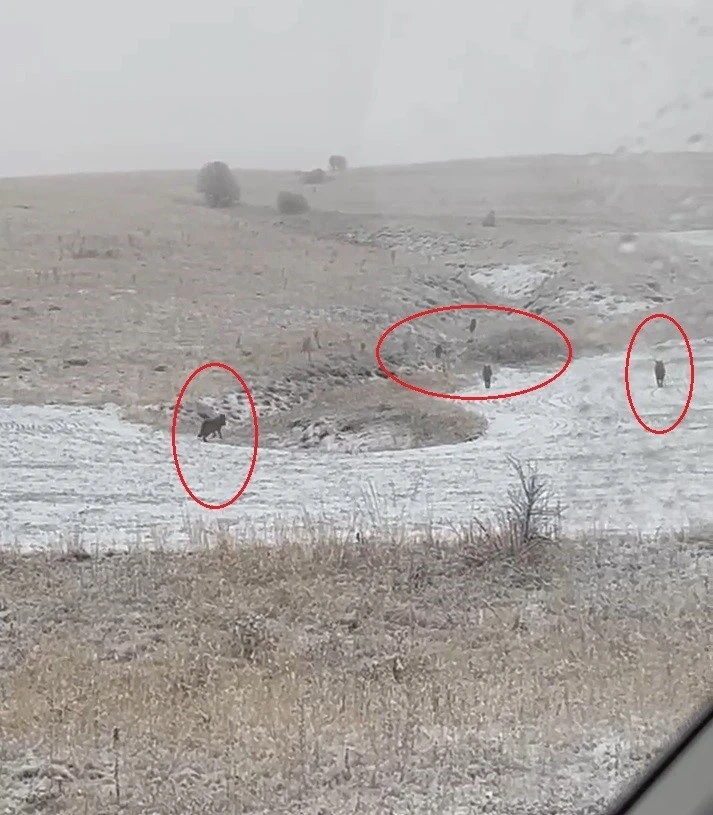 Bayburt’un Adabaşı, Kavacık ve Konursu köylerinde kurt sürülerinin yerleşim yerlerine indiği görüldü. Havaların soğumasıyla birlikte doğada yiyecek bulmakta zorlanan kurtların sürü halinde dolaştığı anlar, cep telefonu kamerasına yansıdı.