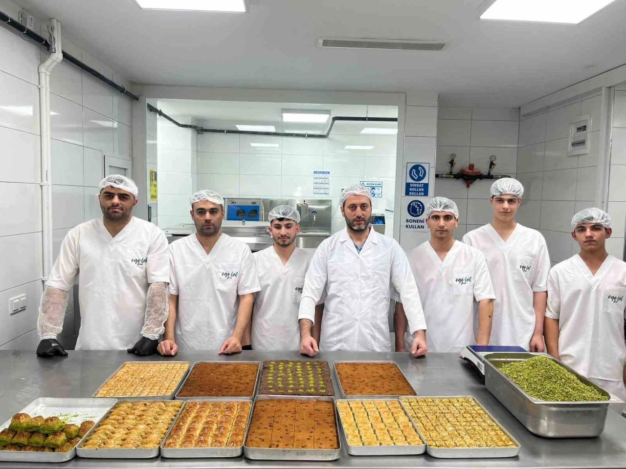 Ramazan ayının bitimine birkaç gün kala baklavacılarda tatlı bir bayram yoğunluğu yaşanırken imalathaneler de talepleri karşılamak için tam kapasite çalışmaya geçti. Bayram dönemini fırsat bilip tatlıları ucuza mal etmek için hile yapan yerlerden uzak durulması gerektiğini söyleyen baklava ustası Serhat Şahin, "Fıstık yerine ıspanak, kabak çekirdeği ya da gıda boyası kullanan yerlere dikkat ederek güvenilir, bilindik yerlerden alın. İyi bir baklava 750 ila bin 500 TL arasında değişen fiyatlarda olur" dedi. Ramazan Bayram’ına kısa bir süre kala baklava siparişlerinde yoğunluk devam ediyor. Vatandaşlar damak tadına ve bütçesine uygun baklavayı almak için yer arayışına girerken imalathaneler de talepleri karşılamak için tam gün üretime geçti. Pastaneler ve fırınlar kilosu 750 ila bin 500 TL arasında değişen fıstıklı baklavadan şöbiyete kadar birçok çeşidi müşterilerine sunarken baklava ustaları ise kaliteyi koruyarak en iyi tatlıları üretmek için hummalı bir çalışma yürütüyor. Güzel bir baklavanın püf noktalarına değinen baklava ustası Serhat Şahin (42), "Unun kalitesi, hamurun inceliği, fıstık ve sade yağ iyi bir baklavanın olmazsa olmazıdır. Şerbetinde ise tamamen organik pancar şekeri kullanılması gerekir. Herhangi bir katkı maddesi kullanılmaması tamamen doğal malzemelerle yapılması baklavanın lezzetini arttırır" ifadelerini kullandı. "Katkı maddeli şerbet, genzi yakar"