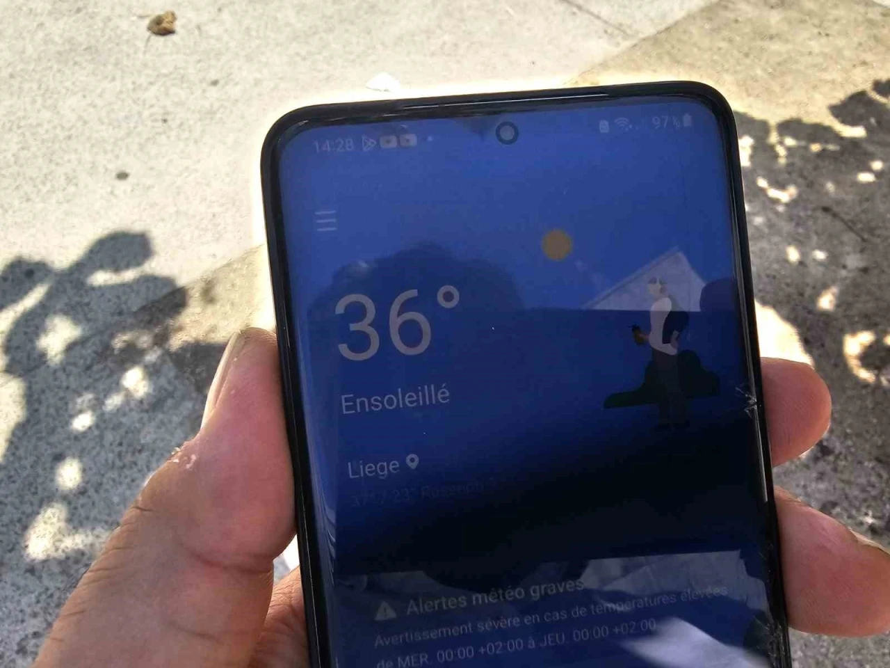 Belçika’nın Liege şehrinde dün 32 dereceyi gösteren termometreler bugün yer yer 42 dereceye ulaştı.