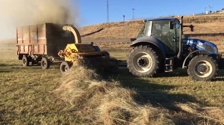 Bingöl’ün Solhan ilçesinde kış aylarına hazırlanan besiciler, yüksek sıcaklığa rağmen kış aylarında hayvanlarına verecekleri samanları hazırlıyor.