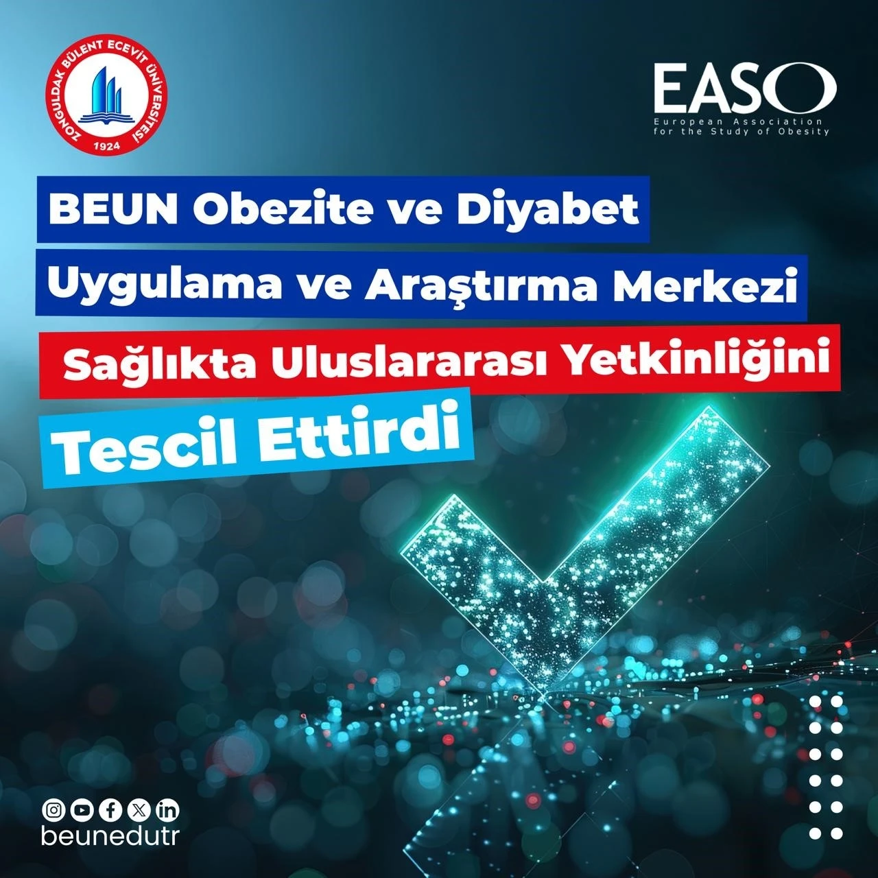 Zonguldak Bülent Ecevit Üniversitesi (BEUN) Obezite ve Diyabet Uygulama ve Araştırma Merkezi, Avrupa’nın önde gelen sağlık organizasyonlarından biri olan Avrupa Obezite Araştırmaları Derneği (European Association for the Study of Obesity, EASO) tarafından bir kez daha akredite edilerek 2028 yılına kadar uluslararası geçerliliğe sahip merkez olma niteliğini korudu.
