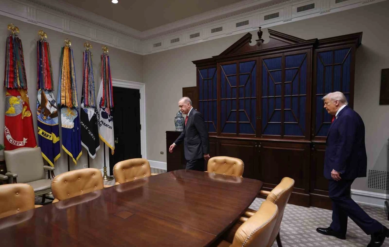 Cumhurbaşkanı Recep Tayyip Erdoğan ile ABD Başkanı Donald Trump arasında Beyaz Saray’da yapılan görüşme sona erdi. Görüşme, 2 saat 20 dakika sürdü. Trump, görüşme sırasında Cumhurbaşkanı Erdoğan’ın anı defterini imzalamak için oturacağı sandalyeyi çekerek jest yaptı. Görüşmenin ardından Trump, Cumhurbaşkanı Erdoğan’ı makam aracına kadar uğurladı. Trump’ın ayrıca uğurlama sırasında Dışişleri Bakanı Hakan Fidan, MİT Başkanı İbrahim Kalın, Enerji ve Tabii Kaynaklar Bakanı Alparslan Bayraktar ve diğer yetkililer ile ayaküstü sohbet ettiği görüldü.