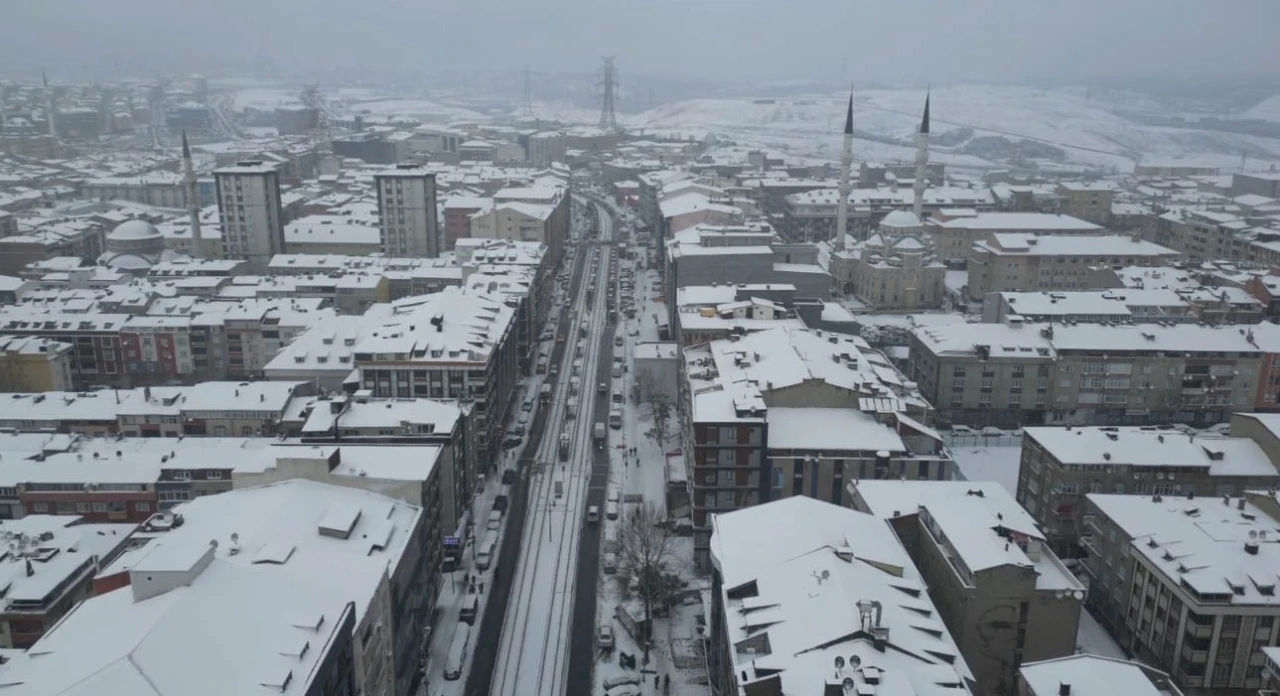Meteorolojinin uyarılarının ardından İstanbul’da başlayan ve ara ara yağmaya devam eden kar yağışı, etkisini yüksek kesimlerde sürdürdü. Sultangazi kar yağışı nedeniyle beyaza büründü. Yer, araç ve çatıların üzeri kar tabakasıyla kaplanırken, ortaya çıkan görsel şölen dron kamerasına yansıdı.