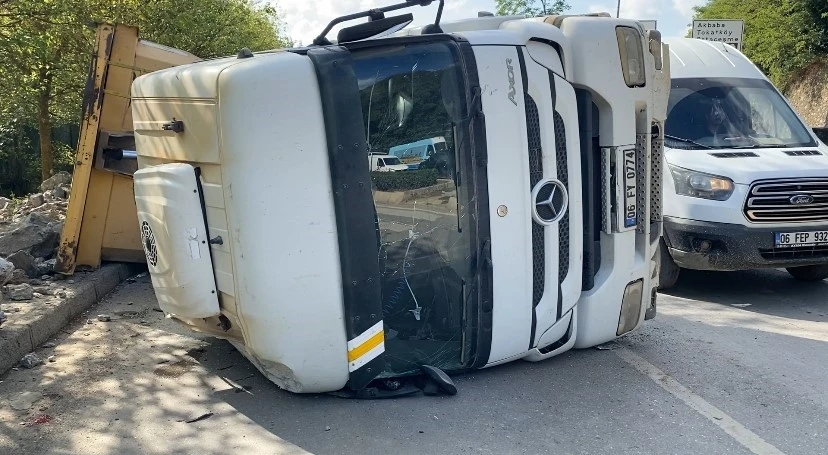 Beykoz’da inşaat molozları yüklü hafriyat kamyonu sürücüsünün direksiyon hakimiyetini kaybetmesi sonucu devrildi. Kazada kamyon sürücüsü yaralanarak hastaneye kaldırıldı. Kaza, saat 15.30 sıralarında Beykoz Elmalı Yolu Sokak üzerinde meydana geldi. 06 FY 0774 plakalı Mercedes marka hafriyat kamyonu, sürücüsünün direksiyon hakimiyetini kaybetmesiyle yola devrildi. Devrilen kamyonun sürücüsü yaralanırken, ihbar üzerine olay yerine polis ve sağlık ekipleri sevk edildi. Yaralı sürücü Beykoz Devlet Hastanesi’ne kaldırıldı. Kaza nedeniyle bölgede trafik yoğunluğu yaşanırken, devrilen kamyonun kaldırılması için çalışma başlatıldı.