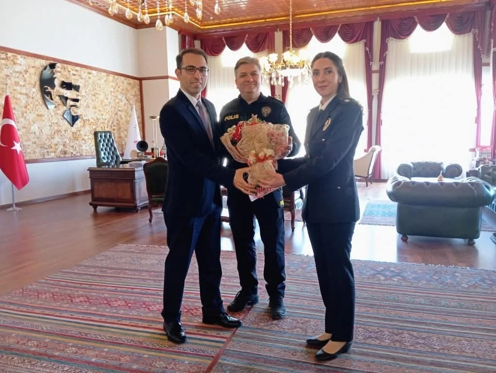 Türk Polis Teşkilatı’nın 180. kuruluş yıldönümü ve 10 Nisan Polis Haftası nedeniyle İlçe Emniyet Müdürü Ahmet Emrecan ve emniyet mensupları, Beypazarı Kaymakamı Vedat Yılmaz’ı makamında ziyaret etti.