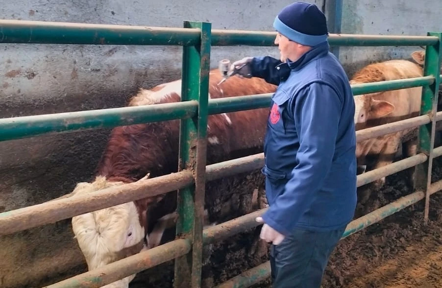 Konya’nın Beyşehir ilçesinde büyükbaş hayvan aşılama kampanyası çalışmaları devam ediyor.