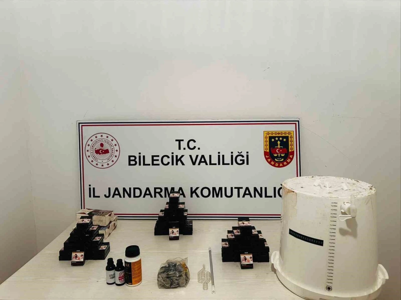 Edinilen bilgilere göre, Bilecik İl Jandarma Komutanlığı Kaçakçılık ve Organize Suçlarla Mücadele (KOM) Şube Müdürlüğü ekiplerince, elektronik sigara, tütün mamulleri ve makaron kaçakçılığıyla mücadeleye yönelik yürütülen çalışmalar kapsamında Söğüt İlçe Jandarma Komutanlığı ve TEM Şube ekipleriyle birlikte operasyon düzenlendi. Bilecik’in Söğüt ilçesine bağlı Küre Köyü’nde G.G.’ye ait ev ve işyerinde yapılan aramada; Bin 266 adet dolu makaron, 600 adet boş makaron, 2 adet 50 mililitre aroma, 1 adet 25 litrelik boş damıtım kovası ve hortumu ile 200 gram toz oksijenli temizleyici ele geçirildi. Ele geçirilen malzemelere el konulurken, Cumhuriyet Savcısının talimatıyla şüpheli G.G. hakkında 5607 Sayılı Kaçakçılıkla Mücadele Kanunu ve 4733 Sayılı Kanuna Muhalefet suçlarından adli tahkikat başlatıldı.