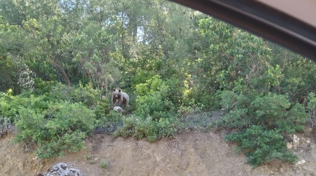 Bilecik’te kara yolunun kenarında gördükleri ayı karşısında şaşkınlık yaşayan sürücüler o anları kayıt altına aldı. Vatandaşlar ayıyı ’gel’ diyerek çağırdı.