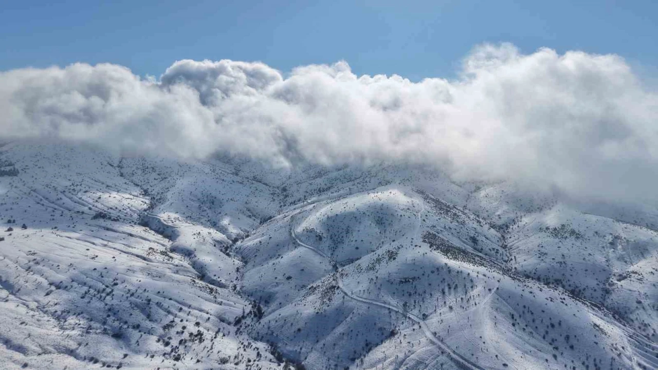 Kırıkkale’nin Balışeyh ilçe sınırlarında bulunan bin 744 rakıma sahip Dinek Dağı, 2026 yılının ilk gününde etkili olan kar yağışıyla beyaza büründü. Soğuk havanın hakim olduğu bölgede, karla kaplanan dağ ve üzerinde süzülen yoğun bulutlar havadan görüntülendi. Ortaya çıkan manzara kartpostallık görüntüler oluşturdu.